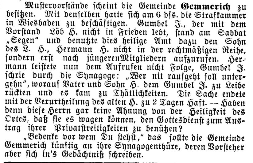 Schochet) konnten sich die wenigen jüdischen Familien in Geisig und Gemmerich