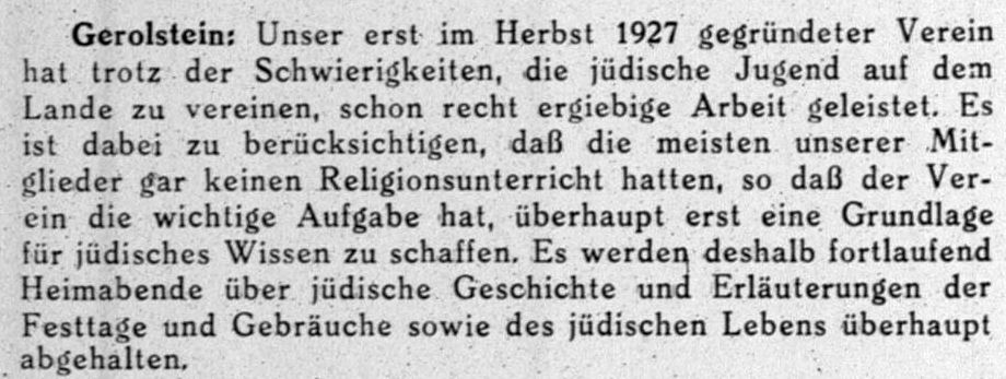 Von Vereinen wird Ende der 1920er-Jahre ein "Jüdischer Jugendverein