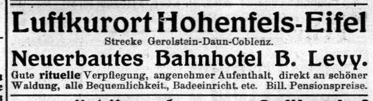 Geschäft von den Söhnen Lazarus und Heimann Levy weitergeführt. Heimann Levy verzog