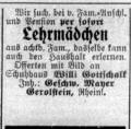 Stelle eines Lehrers, Vorbeters und Schochet war 1921 ausgeschrieben, allerdings