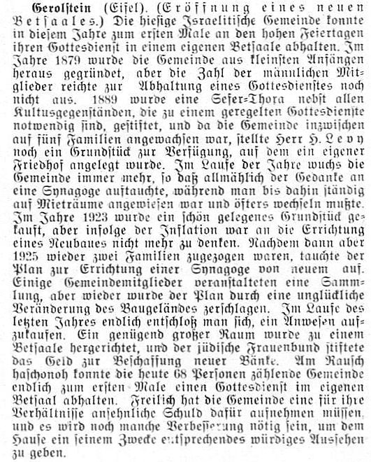 waren. Die Juden in Gerolstein waren 1933 eine kleine Gemeinde von 52