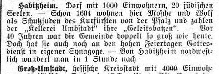 jüdischen Personen zur Gemeinde in Habitzheim. Seit der Mitte des 19.