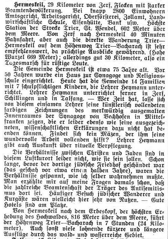 Ackermann. Offenbar war damals kein eigener Vorsänger und Lehrer mehr am Ort. Die Gemeinde wurde von Rabbiner Dr. Altmann aus Trier betreut.
