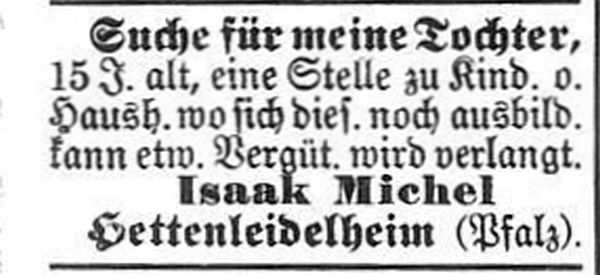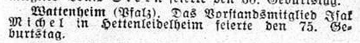 Isaak Michel, Hettenleidelheim (Pfalz)." |