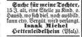 im "Israelitischen Familienblatt" vom 15. Juli 1915: "Suche für meine