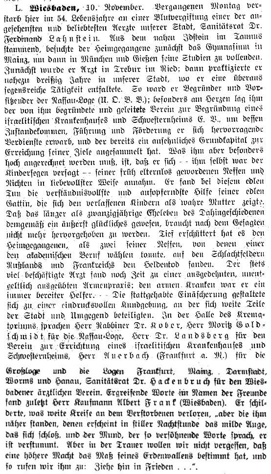 Idstein und Wiesbaden erlassen" (womit Rabbiner David Grünhut in Wiesbaden