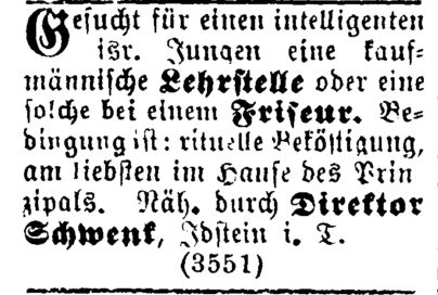 zu Idstein nimmt indessen auch jüdische Seminaristen auf und wird es in kurzer