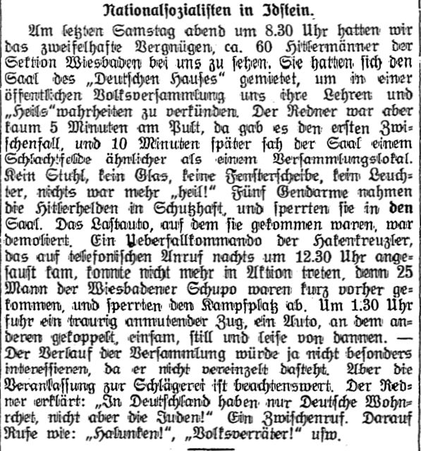 | Monica Kingreen: In wenigen Minuten war alles zerstört. Die Familie Lahnstein in Idstein und die Ausschreitungen beim Novemberpogrom 1938, in: Jahrbuch Rheingau-Taunus Kreis 2013, S. 99-103. |