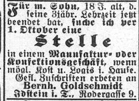 Abteilung eine jüdische Hauswirtschafterin und einen jüdischen Gehilfen. 1898