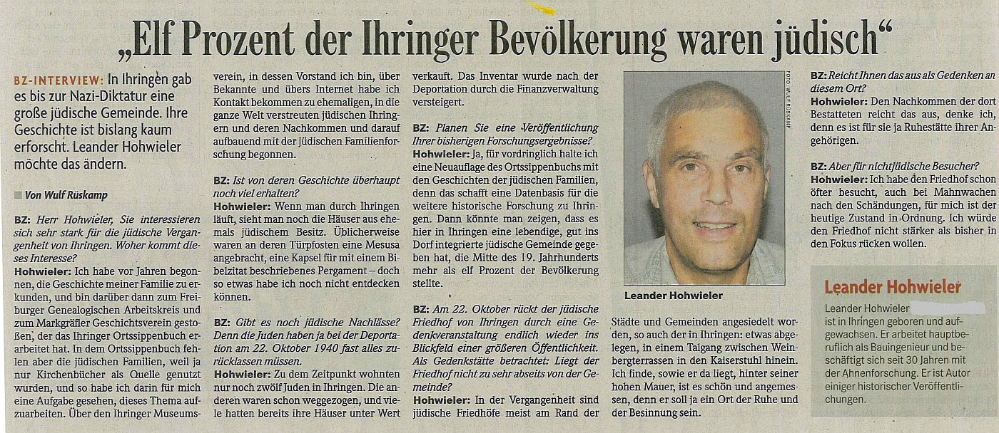 von Wulf Rüskamp mit Leander Hohwieler in der "Badischen Zeitung"