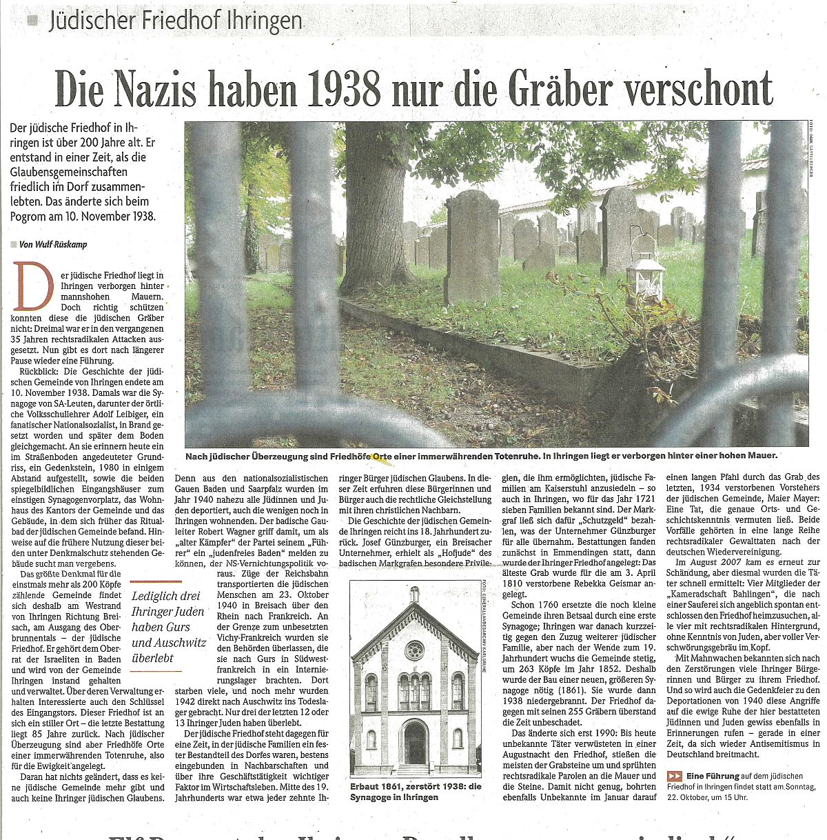 Ihringen aus Anlass der Schändung des jüdischen Friedhofs der