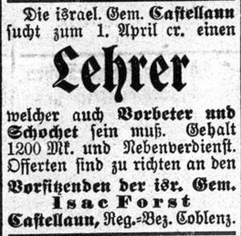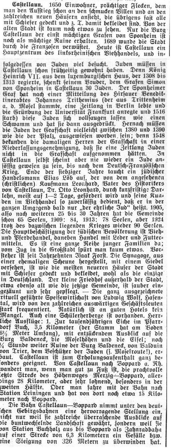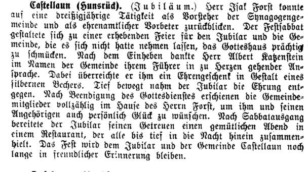 in der Zeitschrift "Der Israelit" vom 3. September 1931: "Kastellaun