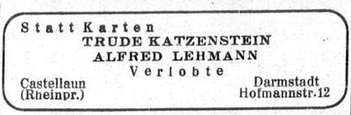 Ehepaares Albert und Jenny Katzenstein anwesend. Einer der insgesamt sechs
