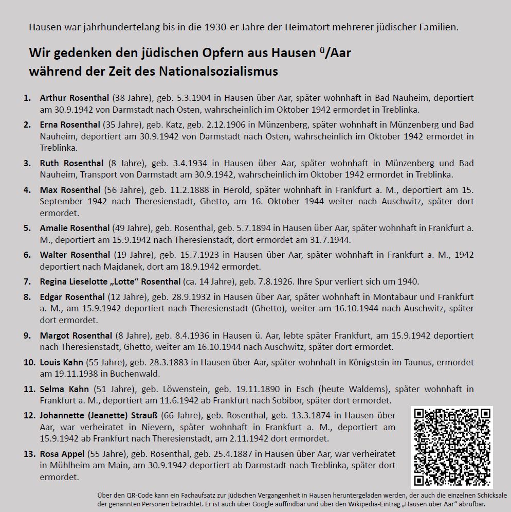 Erinnerung an die jüdischen Opfer der NS-Zeit in Hausen über Aar: am