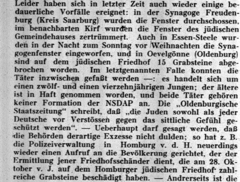 property was repeatedly vandalized. In 1933-39, 30 Jews emigrated, including 11