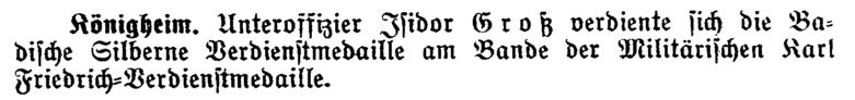 (geb. 10.5.1879 in Königheim, gef. 26.5.1915), Unteroffizier Isidor