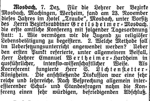 Israelit. Familienblatt 14.3.1918), Louis Lichtenstetter (geb. 13.3.1899 in Königheim, gef. 15.7.1918) und Benjamin Stern