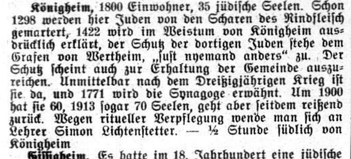 Jahrhunderts zum Erzstift Mainz gehörenden Königheim bestand eine jüdische