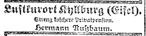 Anmerkung: für die Pension der Familie Nußbaum in Kyllburg finden sich über