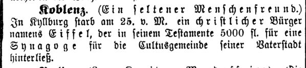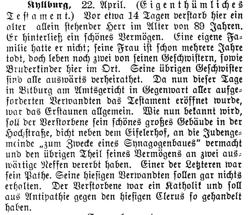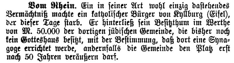 Bau der Synagoge ermöglicht. Die Meldung, dass der Kyllburger Christ Jacob