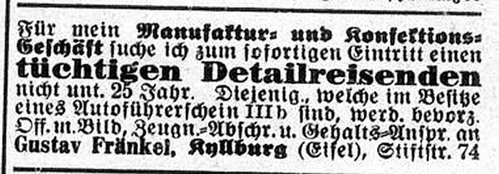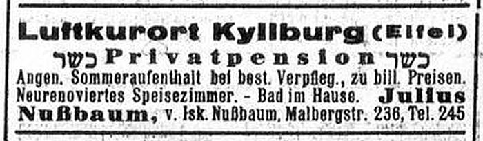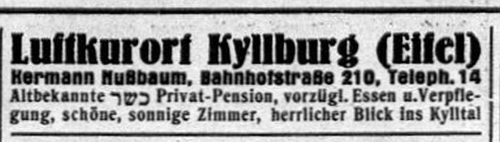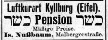 im "Israelitischen Familienblatt" vom 20. Juli 1911: "Luftkurort Kyllburg