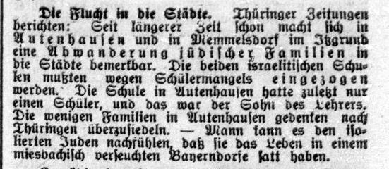 Berichte / Anzeigen zu Memmelsdorf aus jüdischen Periodika des 19./20. Jahrhunderts
