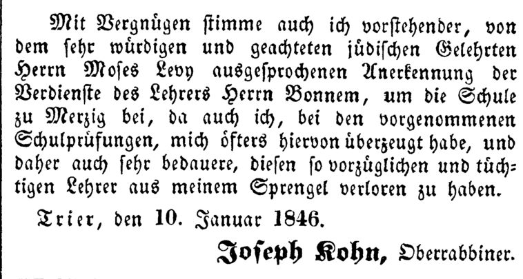 gehörte zum Bezirk des Trierer Oberrabbinates. Als 1840 die Wahl des