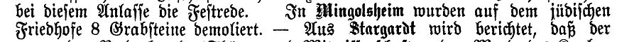 vom 1. Juli 1884: "In Mingolsheim wurden auf dem jüdischen Friedhof