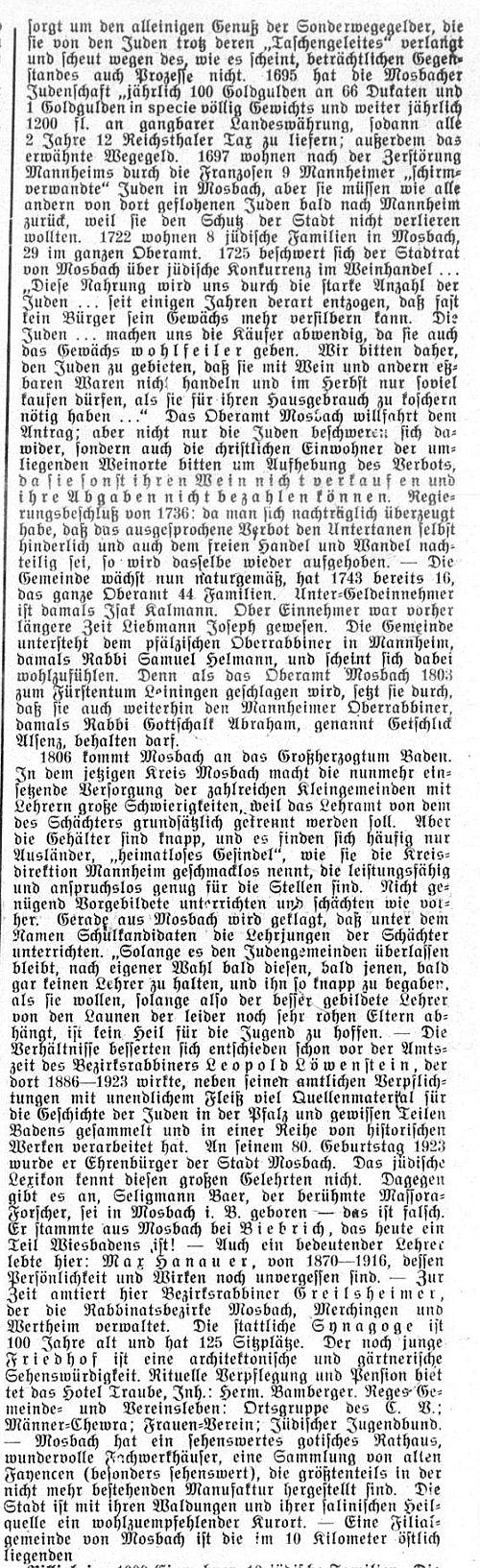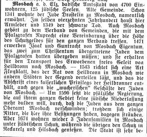 Beiträgen zur jüdischen Geschichte in Mosbach wurden in jüdischen Periodika