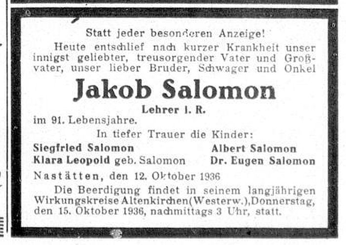 für Hermann Hennig aus Nastätten (1870 - 1940) im jüdischen