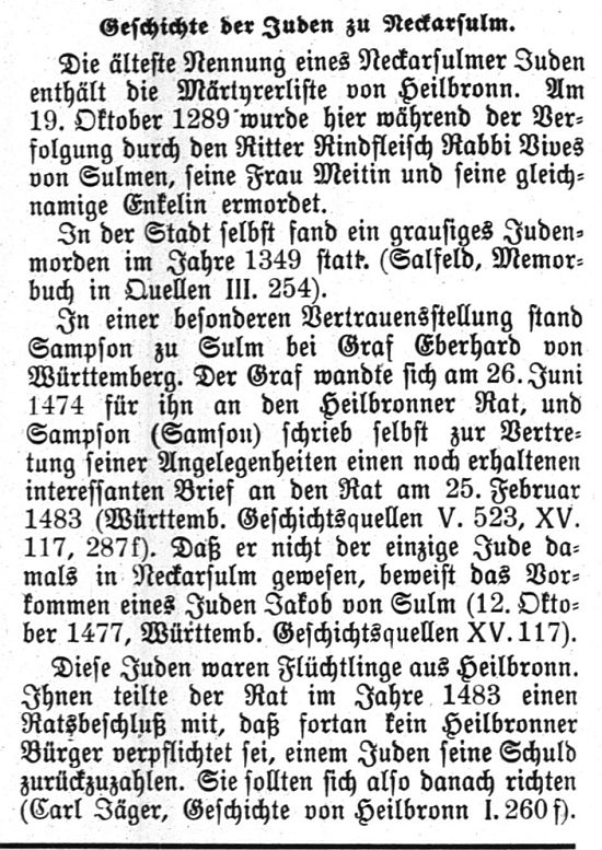 Heilbronner Juden einige von ihnen nach Neckarsulm. Seitdem lebten vermutlich