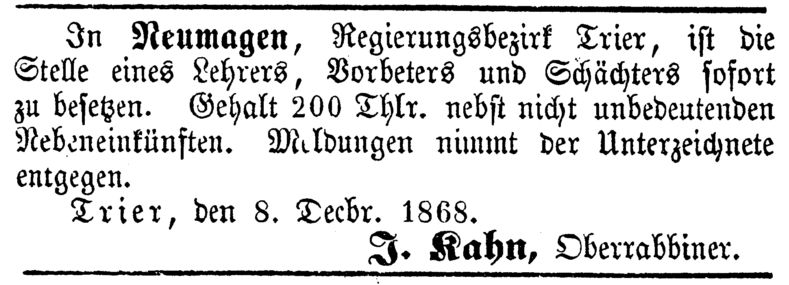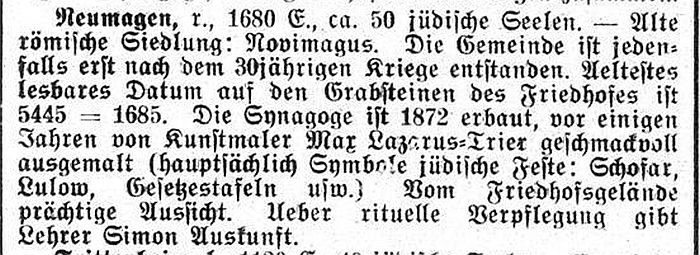 genannt). Neumagen spielte offenbar in dieser Zeit für die jüdischen Gemeinden