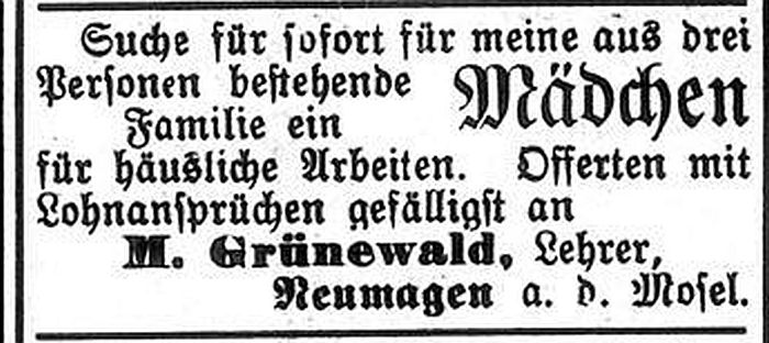 unten Ausschreibung der Stelle von 1889). Von 1889 bis 1924 war als Lehrer Moses