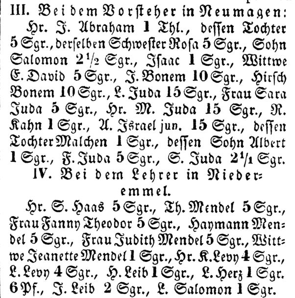die Zahl der in Neumagen lebenden Juden. Die Niederemmeler Juden beantragten