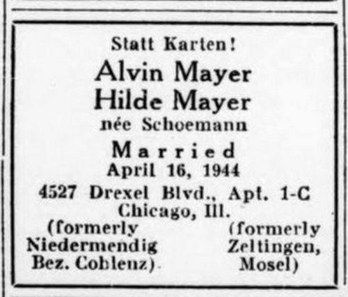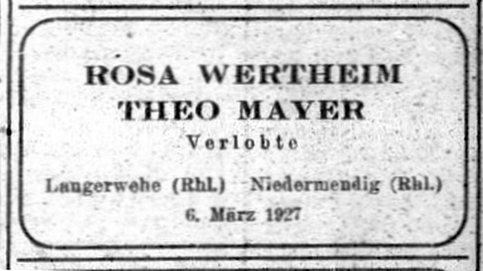 Mayer (1877), Rosa Mayer geb. Levy (1868), Simon Mayer (1888), Alice Meyer (),