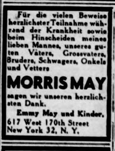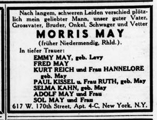 (1863), Berta May (1887), Klara May geb. Jacobsohn (1871),