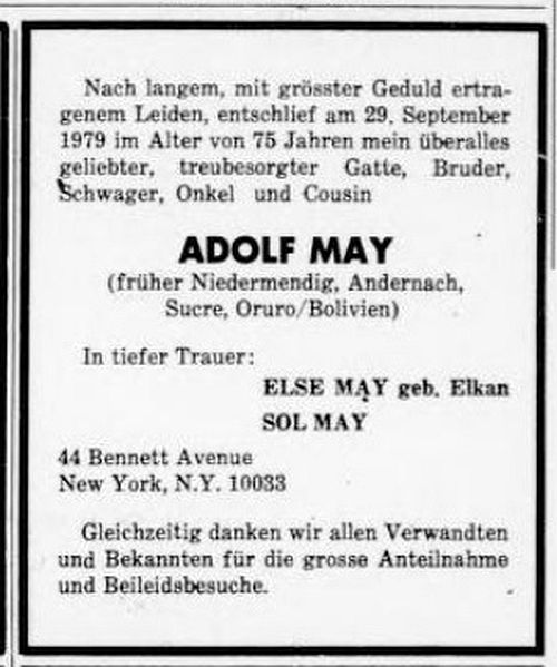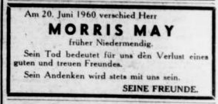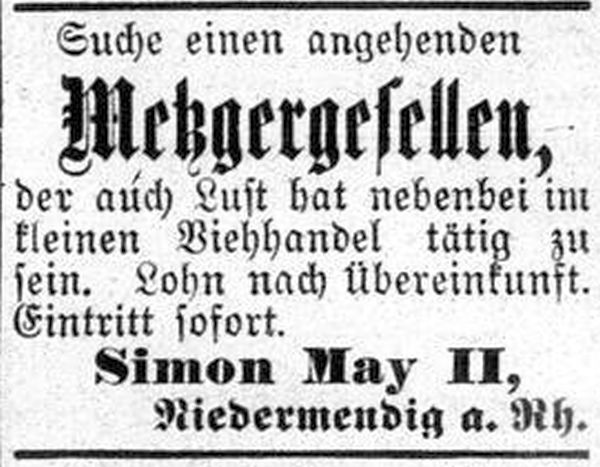 zurück. Der Stammbaum der Familie May in Niedermendig lässt sich bis auf