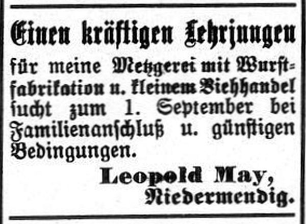 zugleich als Vorbeter und Schochet tätig war. In der Zeitschrift "Der Israelit"