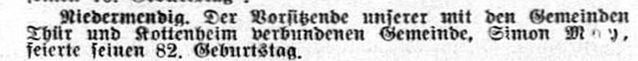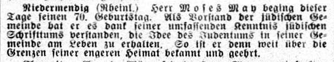 Obermendig inzwischen keine mehr), waren die Gemeindevorsteher Simon May und Moses Eggener.