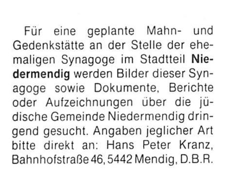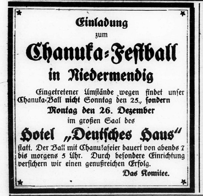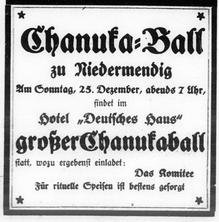 was opened in 1889-90, also serving the Jews of Obermendig. The Jewish