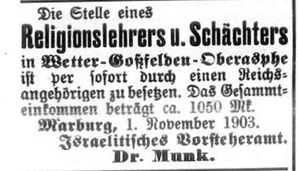 aus Gladenbach oder Wetter eingeladen werden ("Minjanmänner").
