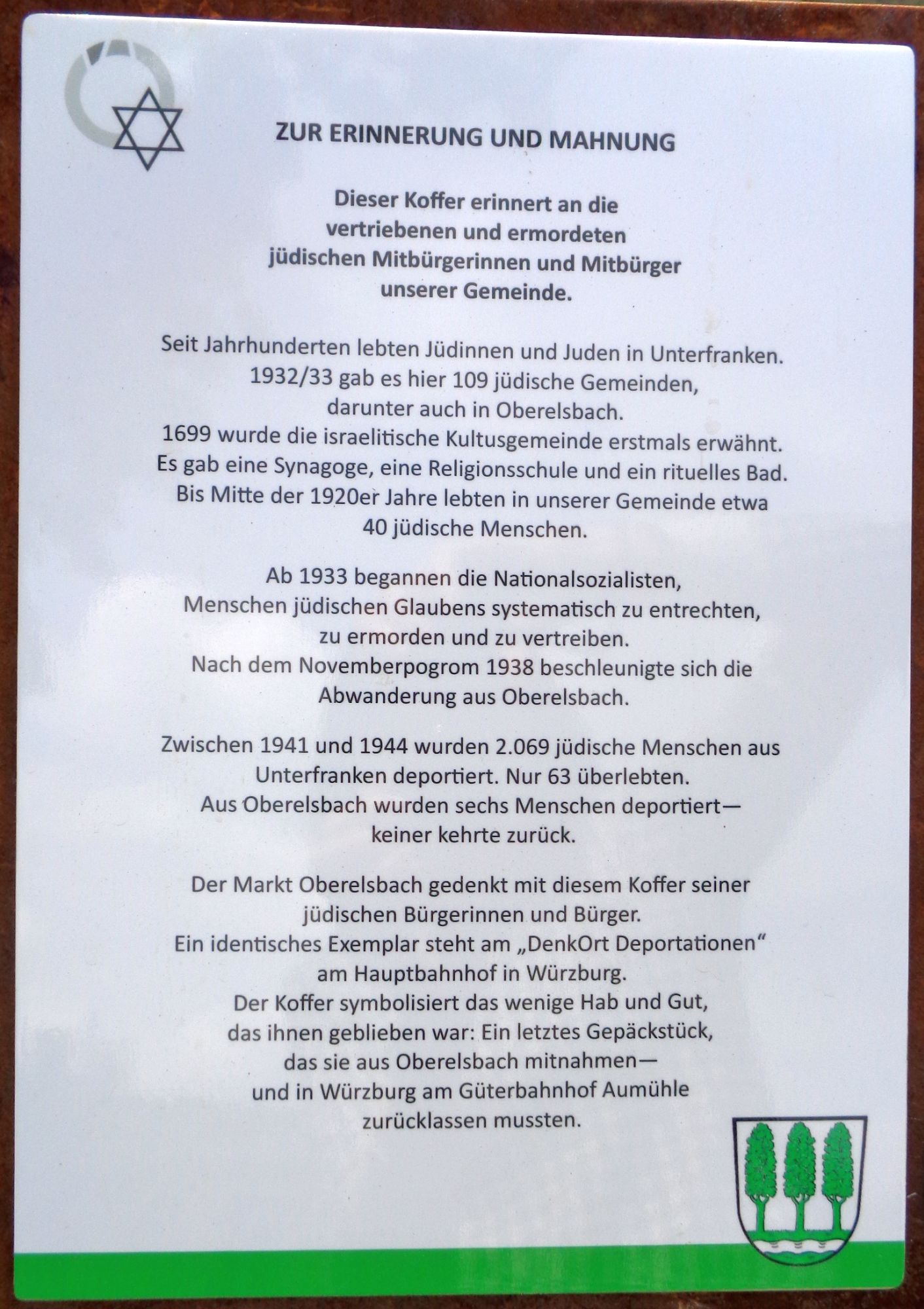 Oberelsbach gelebt hatten, deportiert und ermordet. Der Koffer symbolisiert