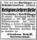 jüdischer Lehrer angestellt, der zugleich als Vorbeter und Schochet tätig war