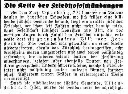 | Michael Trüger: Der jüdische Friedhof in Osterberg / Schwaben.