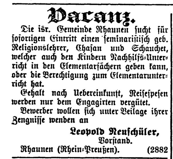 Lehrer Samter, um 1874 J. Nussbaum, um 1878 Lehrer Haas