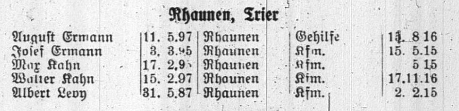Rhaunen, gef. 17.6.1916), Max Kahn (geb. 16.2.1895 in Rhaunen, gef. 31.10.1915),