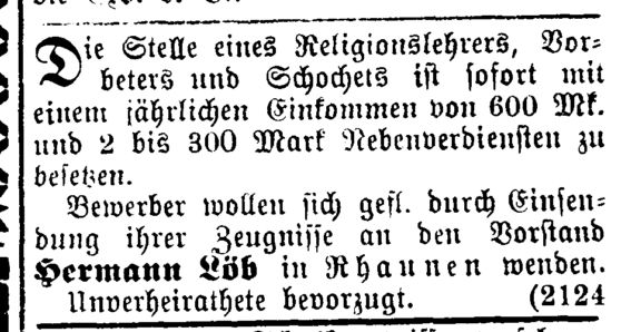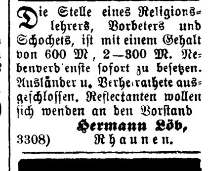 angestellt, der zugleich als Vorbeter und Schochet tätig war. An jüdischen
