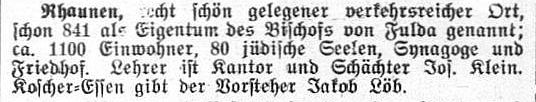 1716 wird in Rhaunen Jud David genannt, 1722 waren es vier Juden