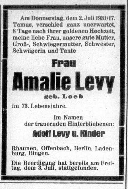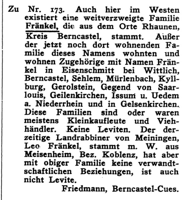 Bis nach 1933 gab es in Rhaunen die folgenden jüdischen Familien (die