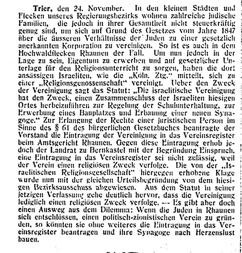 community was under the jurisdiction of the Trier district rabbinate in 1827.